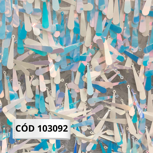 TECIDO PAETÊ GOTAS BRANCO COM AZUL
